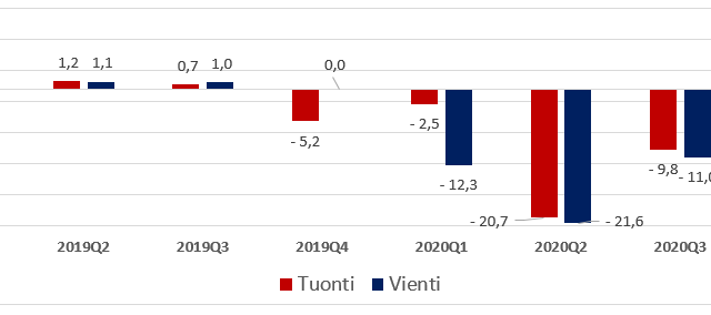 Tulli: Tavaraviennin arvo laski 11,9 prosenttia vuonna 2020 Suomen tavaraviennin arvo laski 11,9 prosenttia vuonna 2020 Tullin ennakkotietojen mukaan. Vienti oli arvoltaan 57,3 miljardia euroa. Tuonnin arvo väheni 9,9 prosenttia. Tavaratuonti oli arvoltaan lähes 59,4 miljardia euroa. Uutiset 08.02.2021