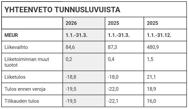 Yhtiö arvioi toimintaympäristön pysyvän epävarmana. Hallitus oli aiemmin ennakoinut vuoden 2026 tuloksen olevan viime vuoden tasolla tai hieman parempi, mutta ei anna enää arviota koko vuoden kehityksestä energian hintojen ja markkinatilanteen epävarmuuden vuoksi.